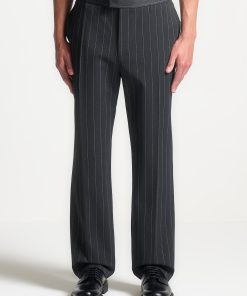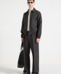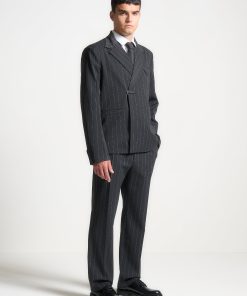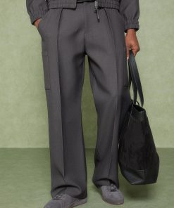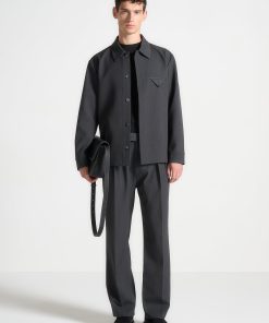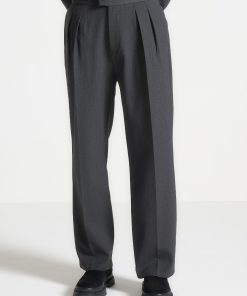 Manière De Voir Men’s Pierre – Relaxed Fit Hatched Pleated Tailored Trousers – Dark Grey | Grey