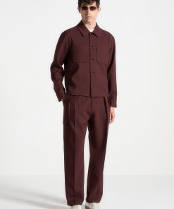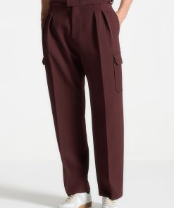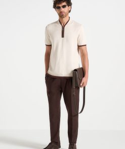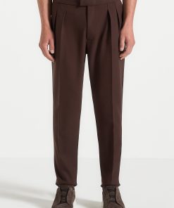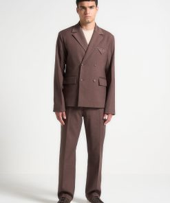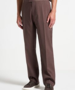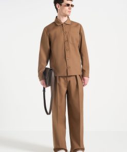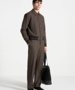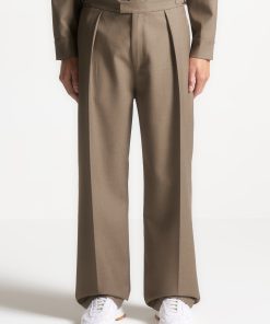 Manière De Voir Men’s Dorian – Relaxed Fit Hatched Pleated Tailored Trousers – Khaki | Khaki