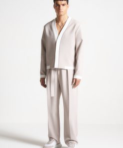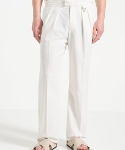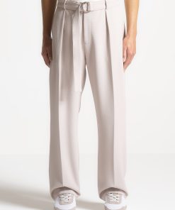 Manière De Voir Men’s Louis – Relaxed Fit Textured Belted Tailored Trousers – Stone | Stone