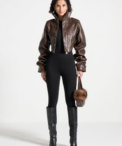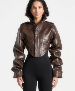 Manière De Voir Women’s Solange – Vintage Leather Tacked Sleeve Corset Jacket – Brown | Brown