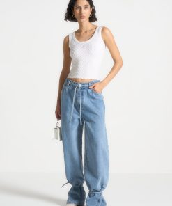 Manière De Voir Women’s Florence – Distressed High Rise Straight Leg Jeans – Mid Blue | Mid Blue