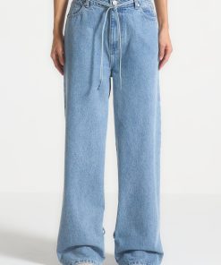Manière De Voir Women’s Faye – Wide Mid Rise Jeans With Tie Waist – Washed Black | Washed Black