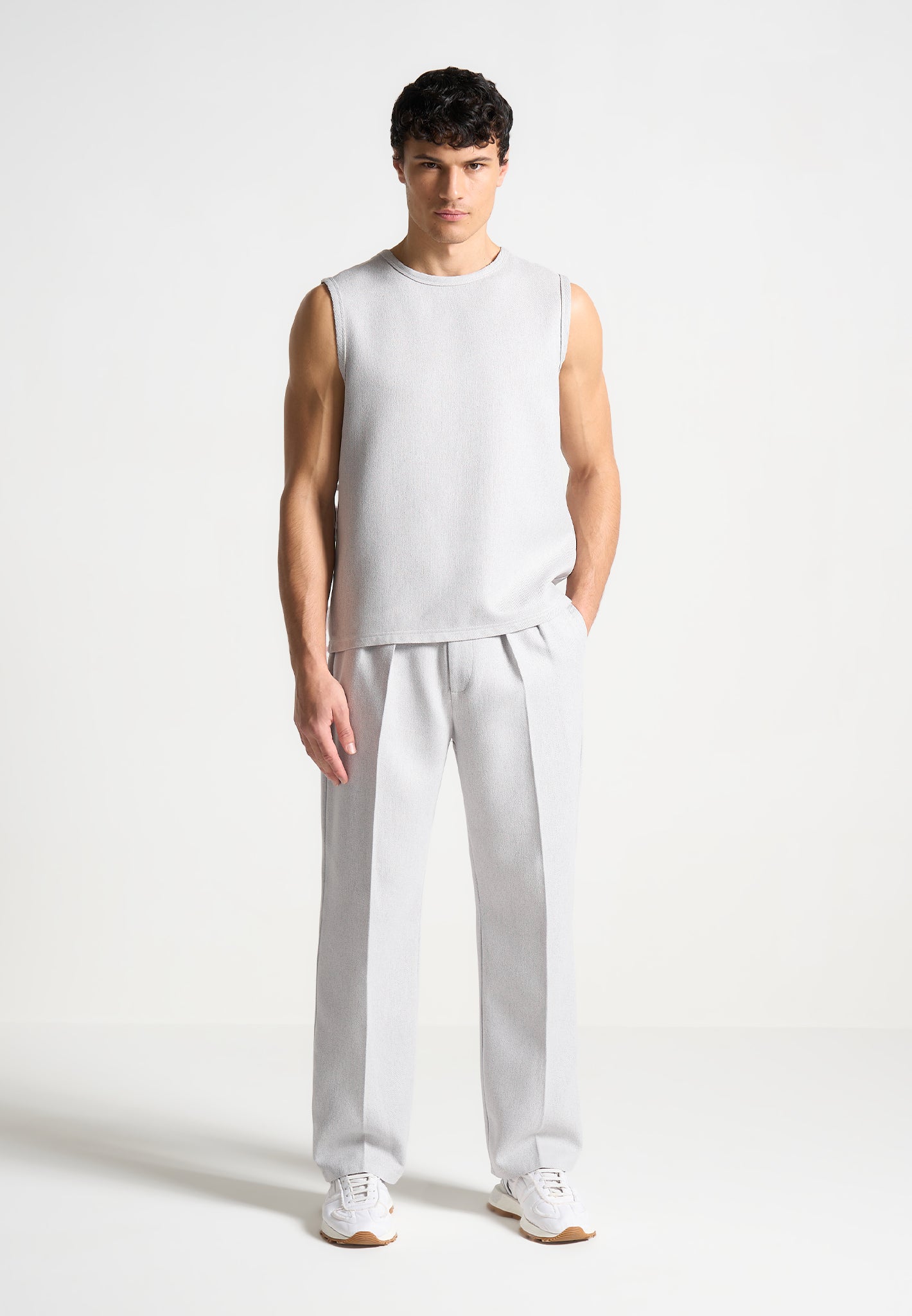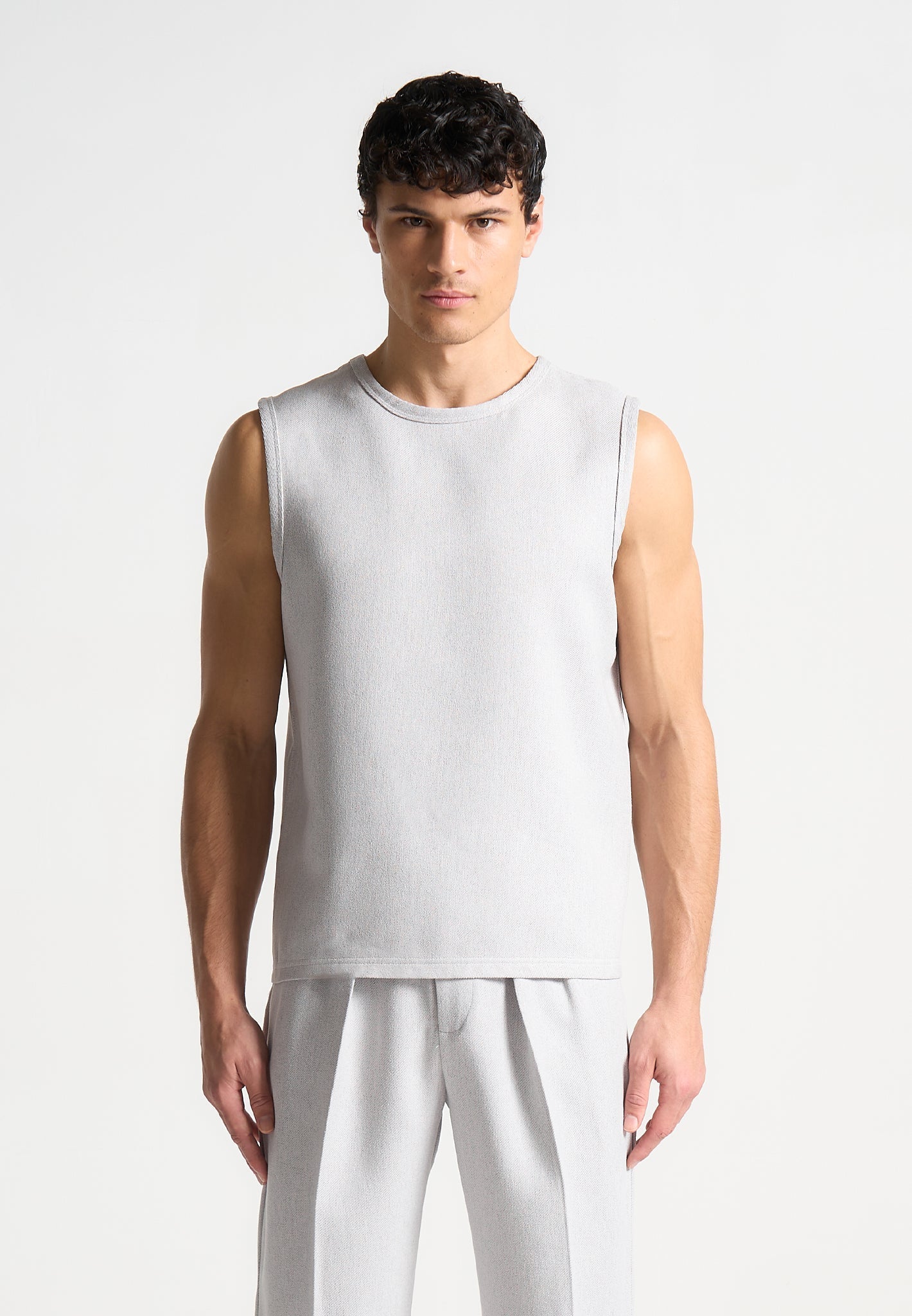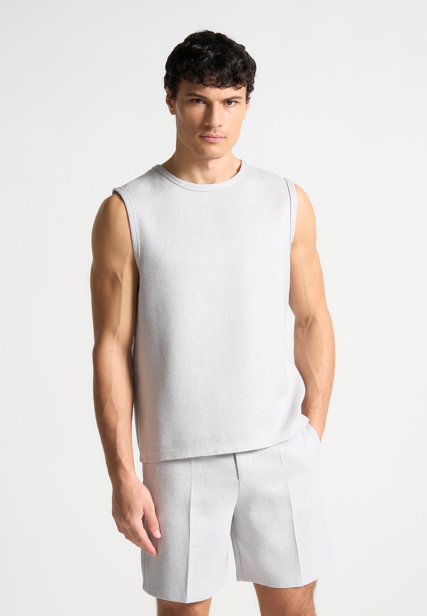 Introducing our Boxy Textured Vest in Grey, expertly crafted with a relaxed fit, this Vest offers both comfort and style. The sleeveless design and soft material provides a lightweight feel, while the embroidered Eiffel detail adds a touch of sophistication. Perfect for any discerning wardrobe, it’s a must-have for layering or wearing alone.