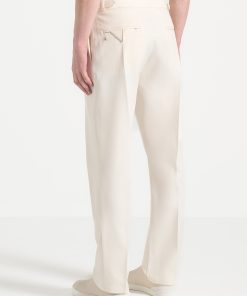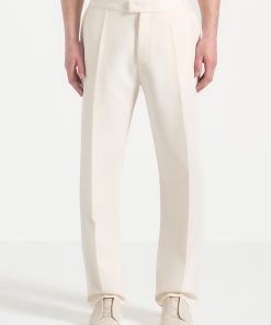 Designed with clean lines and quiet functionality, the Regular Fit Tailored Trousers feature built-in side adjusters that offer a precise fit without the need for a belt. The silhouette is classic yet modern, with a mid-rise and straight leg structured by sharp front creases—delivering versatility from formal to everyday wear.