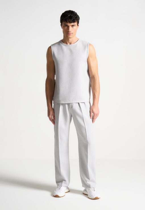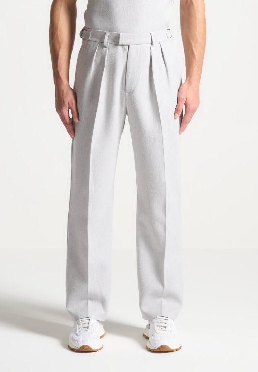 Manière De Voir Men’s Best Sellers Pierre – Relaxed Fit Textured Pleated Tailored Trousers – Light Grey | Grey