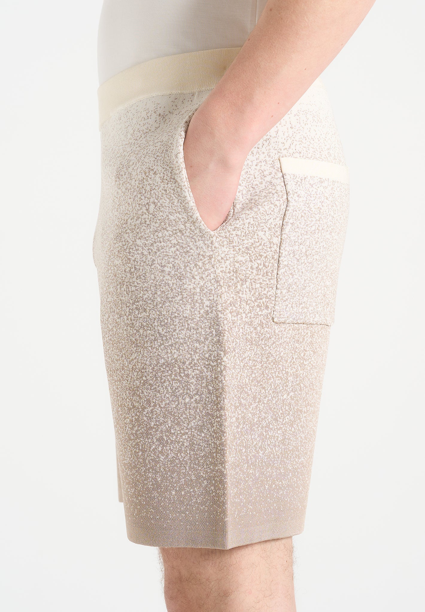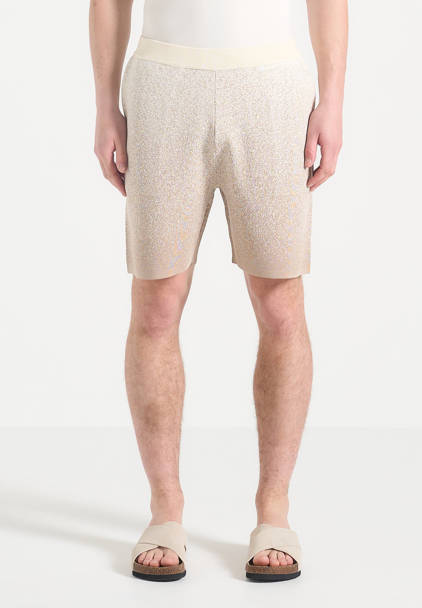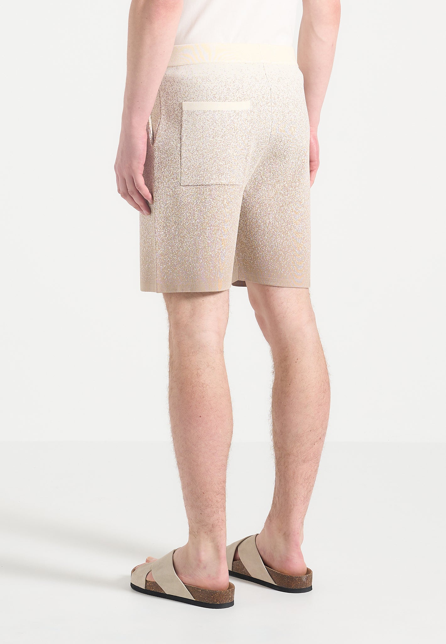 Where texture meets transition, the Ombré Knit Shorts are designed with a gradient fade that shifts tone from top to hem, creating visual flow with a soft, tactile finish. The elasticated waistband keeps the silhouette minimal and adaptable, while the knit construction adds a refined edge to laid-back dressing.