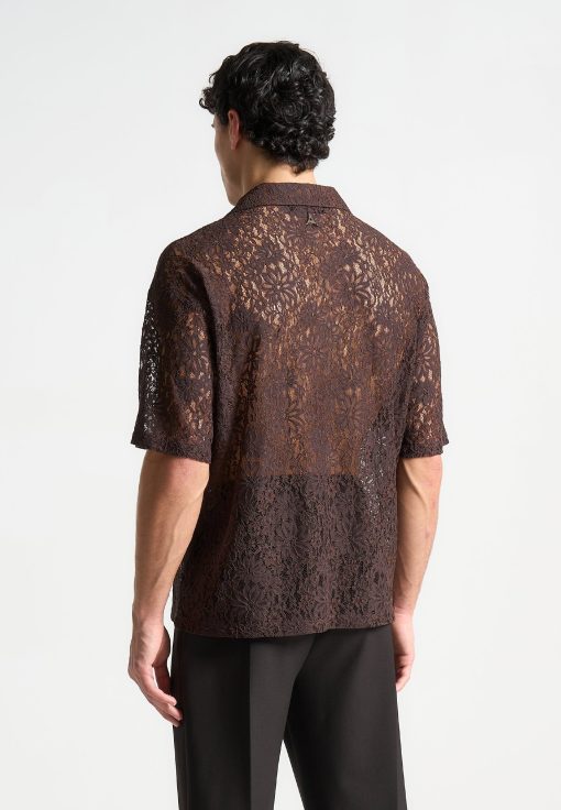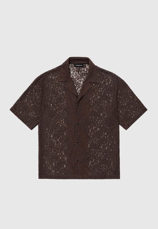 Meticulously crafted with delicate lace, the Boxy Lace Revere Shirt seamlessly merges breathability with sophistication. The Revere collar and boxy fit emanates masculinity and refinement, while the subtle gold-rim button detailing adds a touch of understated luxury. Versatile for any occasion, this shirt is an essential wardrobe staple.
