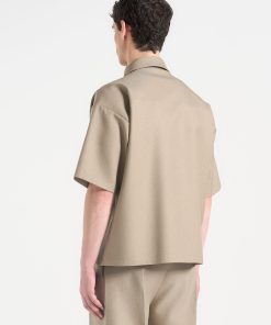 This Boxy Shirt is a versatile addition to any wardrobe. The concealed frontal zip provides a sleek and modern look, while the crease detail adds a refined touch. The neutral tone and classic collar make it easy to dress up or down, perfect for any occasion.