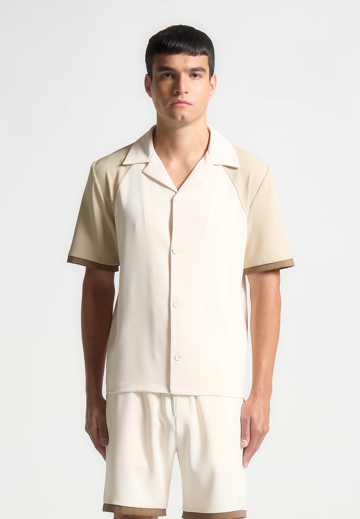 Experience ultimate comfort and style with our Colour Block Raglan Revere Shirt. Featuring a revere collar and relaxed fit, it offers effortless refinement. The contrasting fabric adds a unique touch, making it a versatile addition to any wardrobe. Perfect for casual outings or more formal, smart-casual occasions, this shirt promises comfort and individuality in every wear.