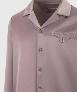 The Satin Overshirt delivers a refined, high-gloss aesthetic with fluid drape and tailored structure. Crafted from lustrous satin with a weighty hand feel, it features a relaxed cut and open revere collar that channels understated luxury. The tonal button-down front and angular chest pocket add a clean, contemporary edge to this elevated layering piece.