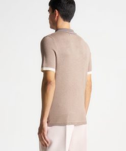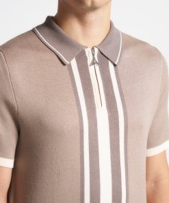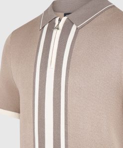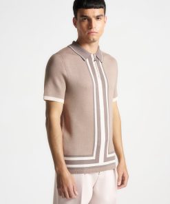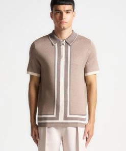 Introducing our Contrast Border Knit Zip Polo Shirt in Taupe. Crafted from a soft knit fabric, it’s both breathable and warm, making it a perfect transitional year-round piece. Complete with Silver hardware accents, a functional quarter-zip and a fitted collar, this Polo Shirt blends functionality with style, making it a versatile essential for your wardrobe.