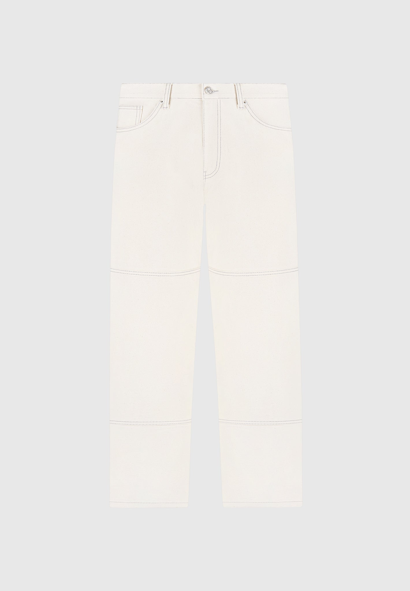 Introducing our Contrast Stitch Carpenter Jean in Cream. Boasting a relaxed fit with refined contrast stitching, these Jeans effortlessly blend comfort with style. The functional pockets ensure practicality while the embossed Eiffel detailing on the back pocket adds a unique touch. Crafted with premium quality fabrics, these Jeans offer durability and breathability for all-day wear.