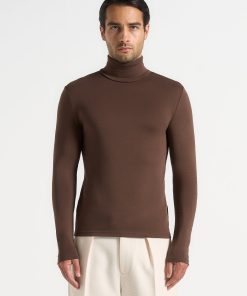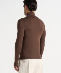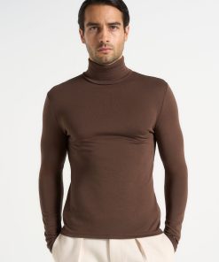 Manière De Voir Men’s Core Collection Blaise – Long Sleeve Roll Neck Top – Brown | Brown