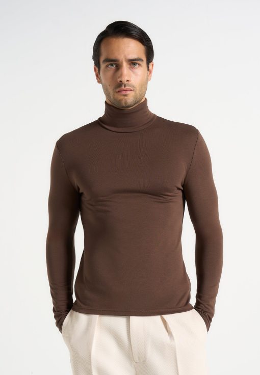 Manière De Voir Men’s Core Collection Blaise – Long Sleeve Roll Neck Top – Brown | Brown