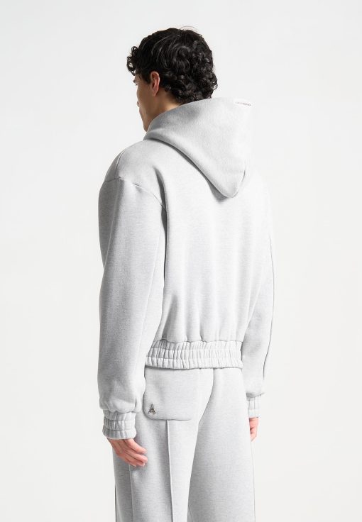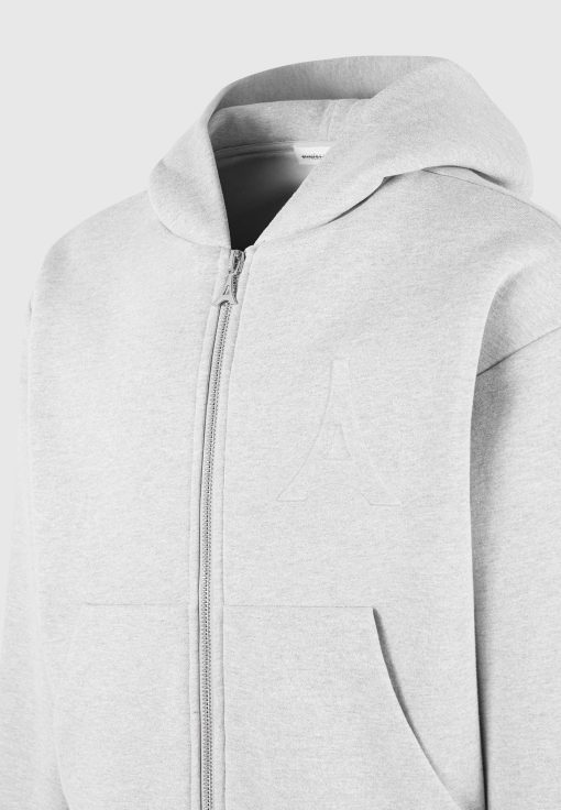 Experience the perfect blend of comfort and style with the Éternel 420GSM Eiffel Embossed Zip Hoodie in Grey. This hoodie features a full zip hooded silhouette and a relaxed fit, crafted from heavyweight 420GSM fabric for exceptional durability and warmth. Pair effortlessly with the Éternel 420GSM Eiffel Embossed Pintuck Joggers for a coordinated and refined casual look.