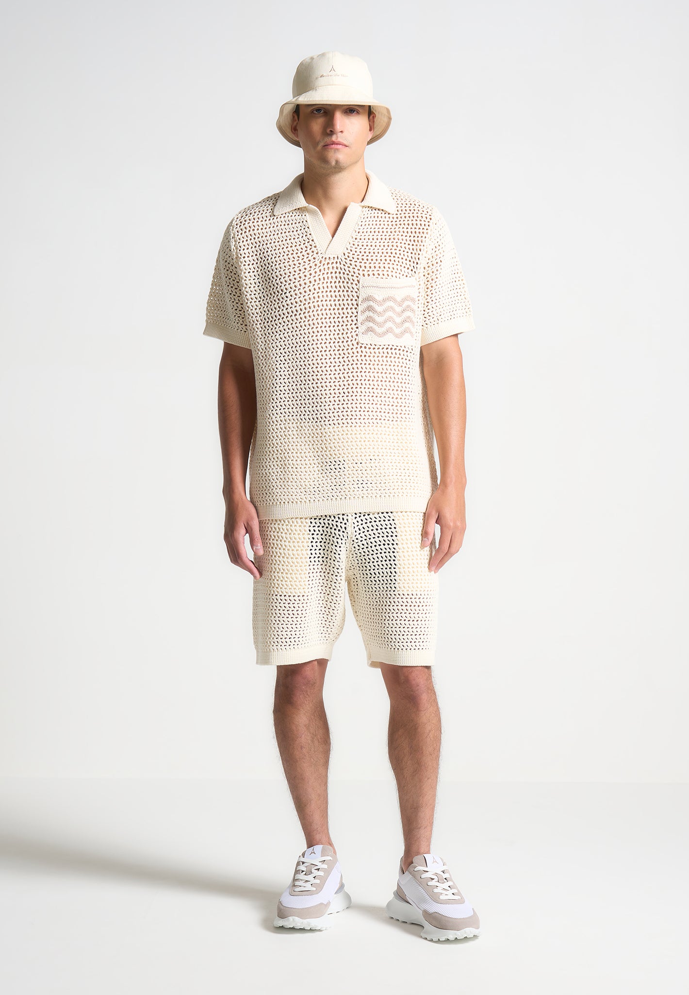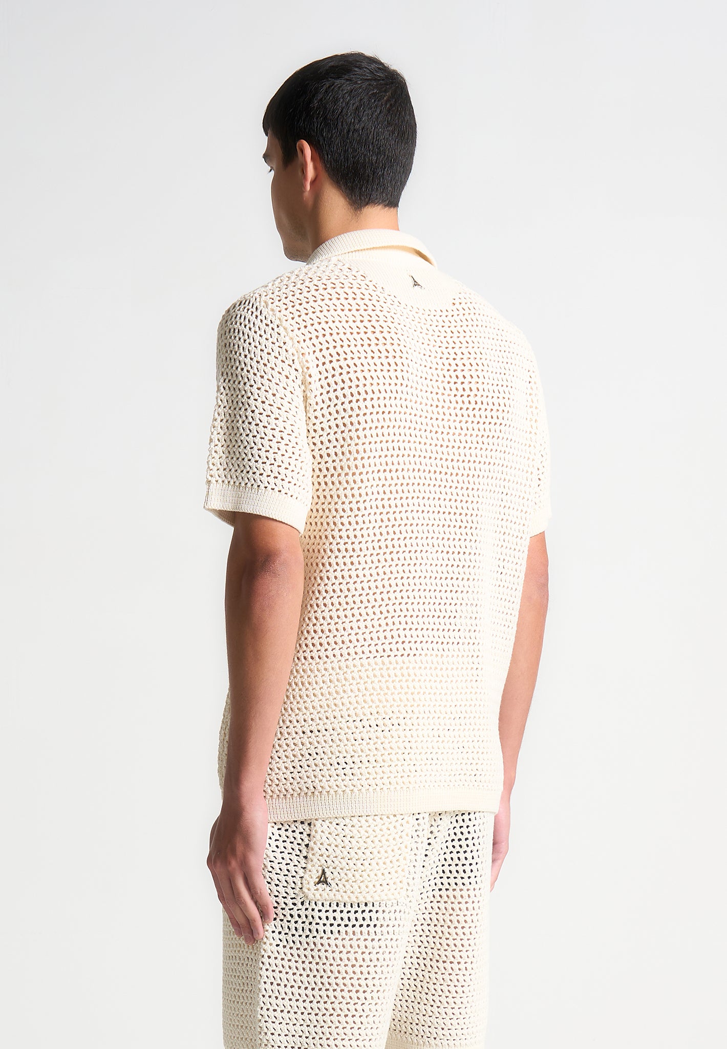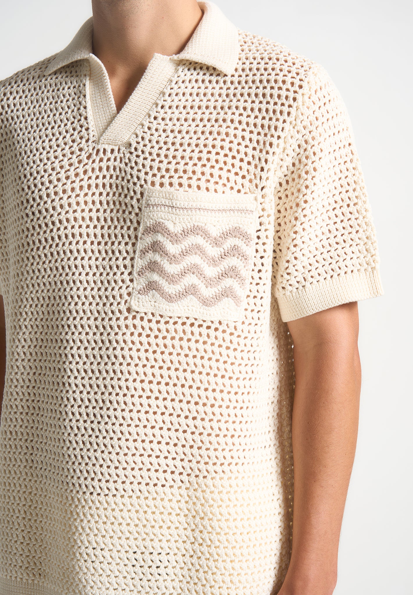 Expertly crafted from a high quality, crochet weft fabric, this Polo Shirt offers superior comfort and breathability. Its short sleeve silhouette is perfect for warm weather, while the contrast design on the front pocket adds a refined touch. Complete the look by pairing with Crochet Knit Shorts.