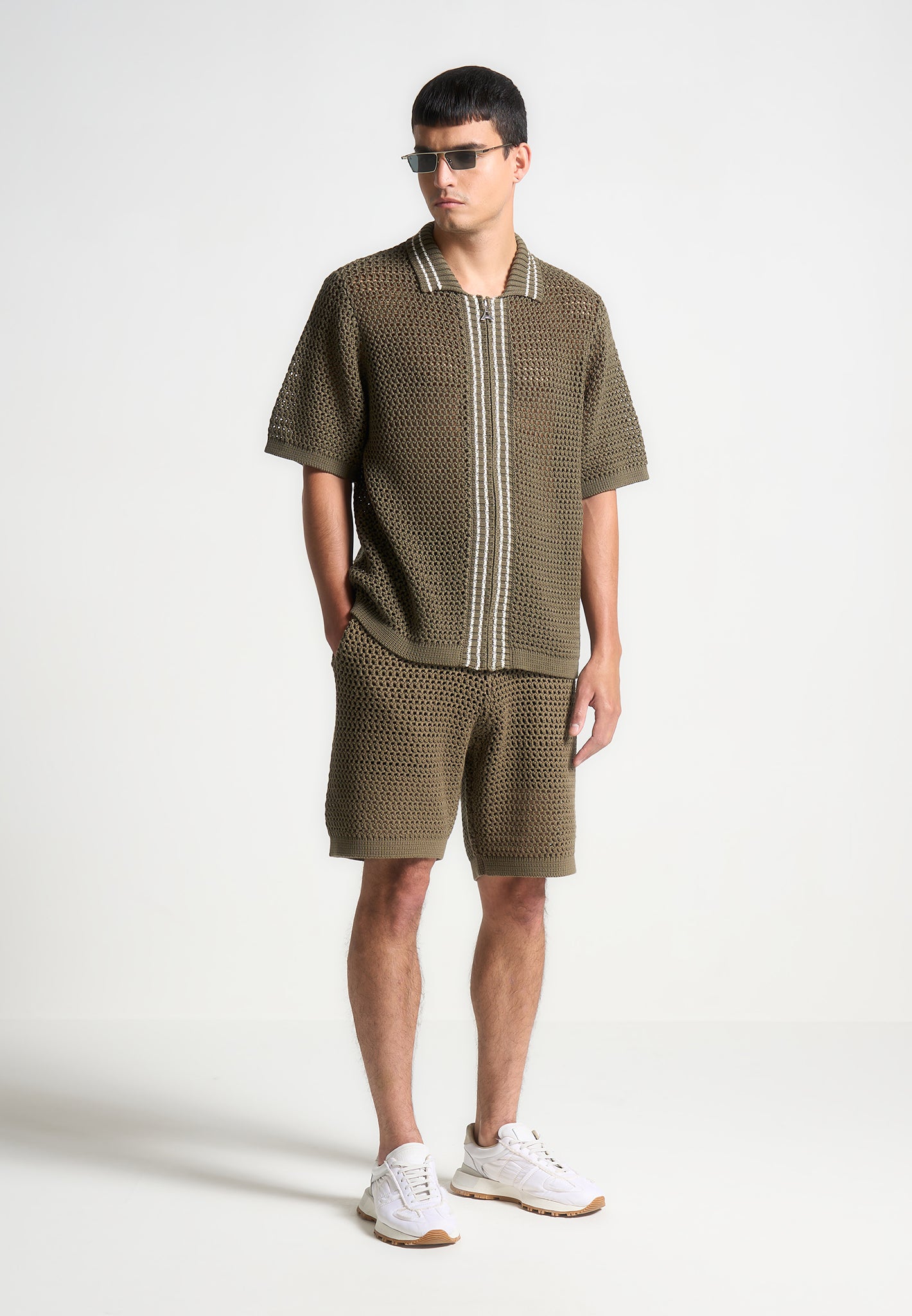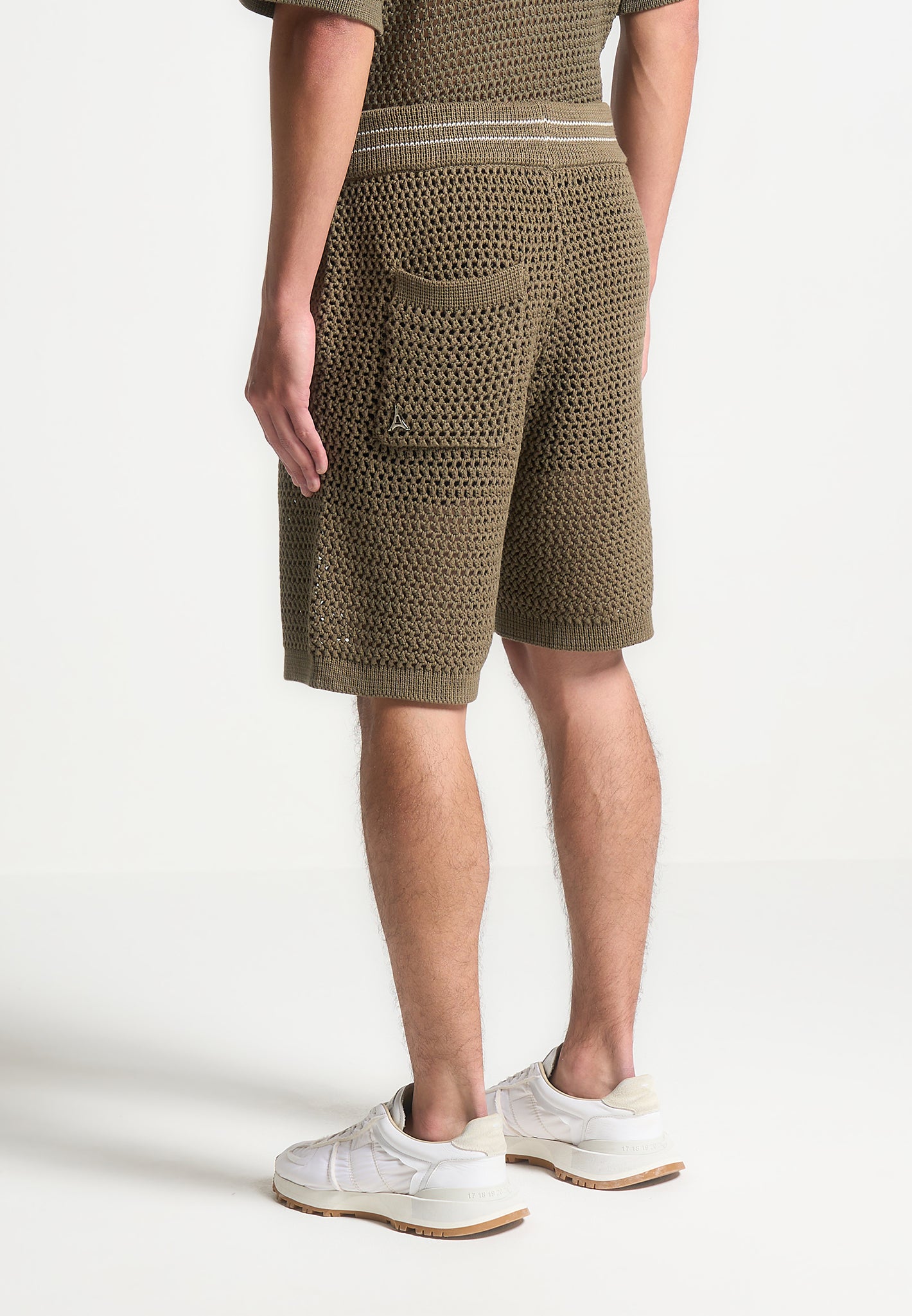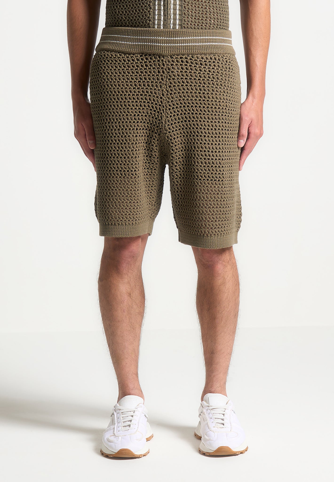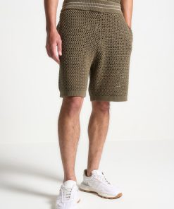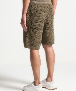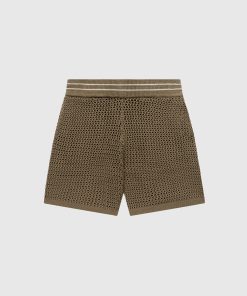 Manière De Voir Men’s Crochet Knit Stripe Shorts – Khaki | Khaki