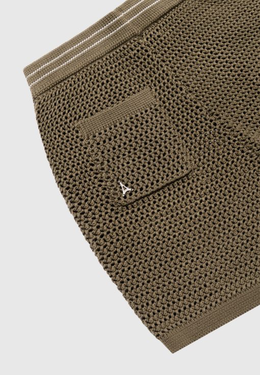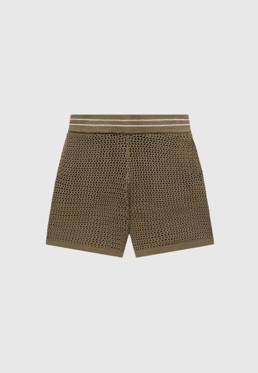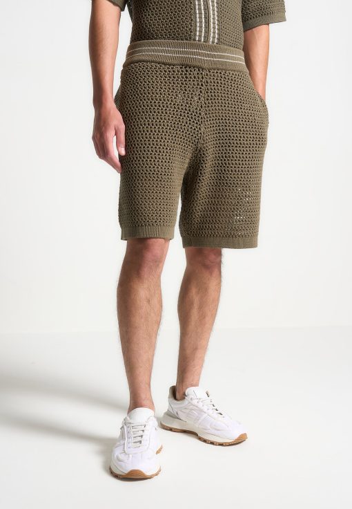 Manière De Voir Men’s Crochet Knit Stripe Shorts – Khaki | Khaki