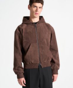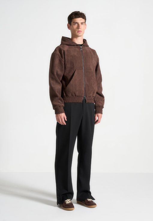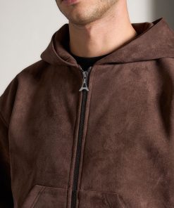 This Cropped Suede Hoodie in Brown offers a sleek, modern look with a touch of luxury. The soft suede gives it a premium feel, while the elasticated waistband and cuffs ensure a comfortable, tailored fit. The cropped design adds a contemporary edge, making it easy to style for casual or elevated outfits. A perfect blend of comfort and style, this hoodie is a versatile wardrobe essential.