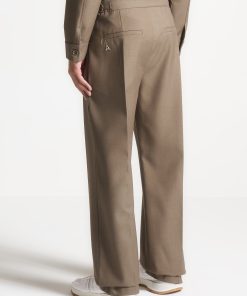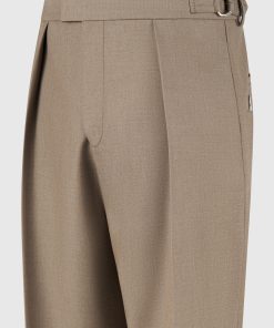 Elevate your wardrobe with our Hatched Pleated Tailored Trousers in Khaki, offering a relaxed fit for enduring comfort throughout the day. With side slip pockets and a pleat to crease detail, these trousers effortlessly blend practicality with style. Perfect for both smart casual and formal occasions, these versatile trousers are a must-have addition to your collection.