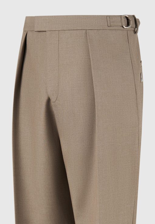 Elevate your wardrobe with our Hatched Pleated Tailored Trousers in Khaki, offering a relaxed fit for enduring comfort throughout the day. With side slip pockets and a pleat to crease detail, these trousers effortlessly blend practicality with style. Perfect for both smart casual and formal occasions, these versatile trousers are a must-have addition to your collection.