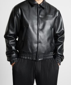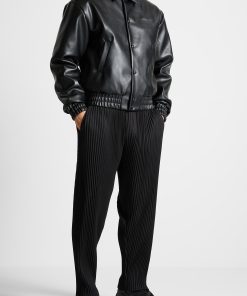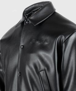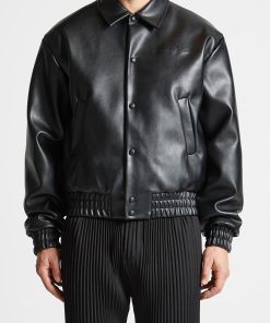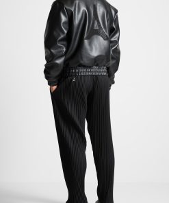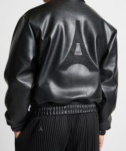 Elevate your wardrobe with this Eiffel Rhinestone Varsity Jacket. Crafted with Vegan Leather and featuring a rhinestone embellished Eiffel patch on the back, it is sure to add quality and luxury to any look.
