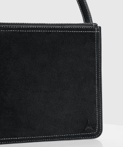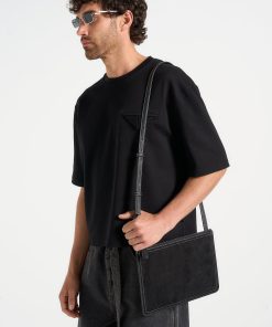 Manière De Voir Men’s Elio – Suede Contrast Stitch Crossbody Bag – Black