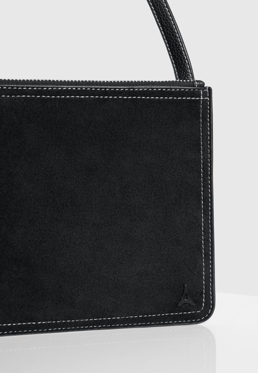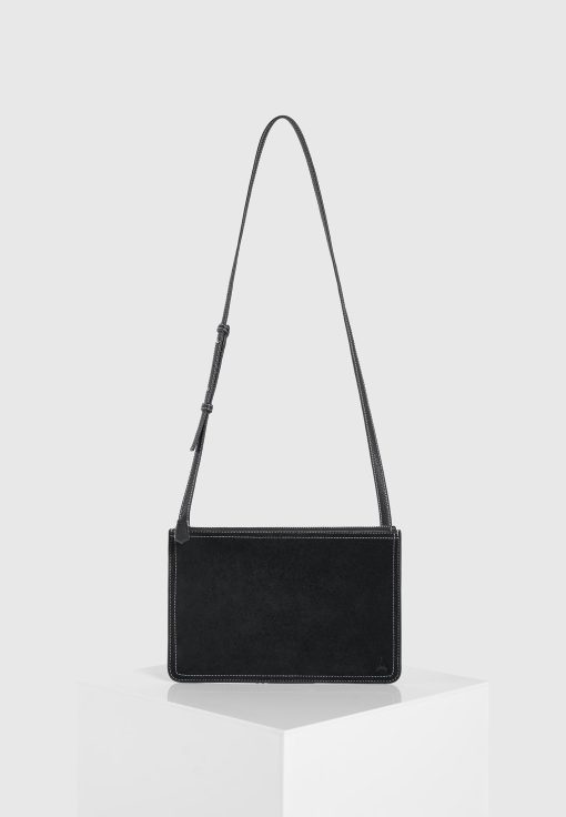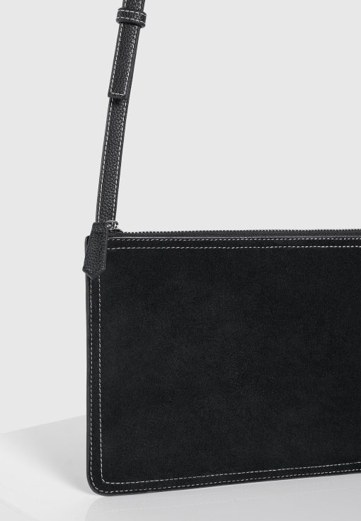Manière De Voir Men’s Elio – Suede Contrast Stitch Crossbody Bag – Black