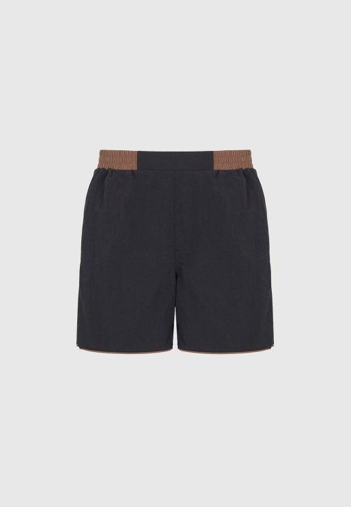 The Swim Shorts with Contrast Waist Band fuse utility with standout design, featuring a bold contrast elastic waistband that anchors the look while ensuring adaptive comfort. Designed for both poolside and street styling, the sharp piping trim reinforces the tailored shape, while the quick-dry fabrication delivers performance without compromise.