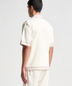 Introducing our Cream Floral Border Resort Shirt: a comfortable and versatile piece crafted from high-quality satin-finish fabric. Its subtle floral print, complemented by a contrasting collar and hem, offers a modern update to your wardrobe staples.