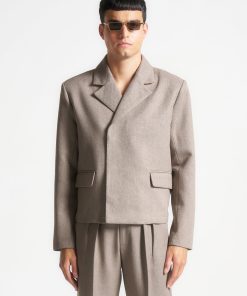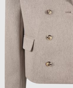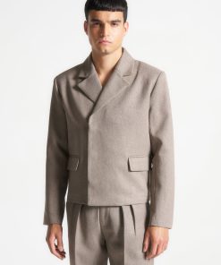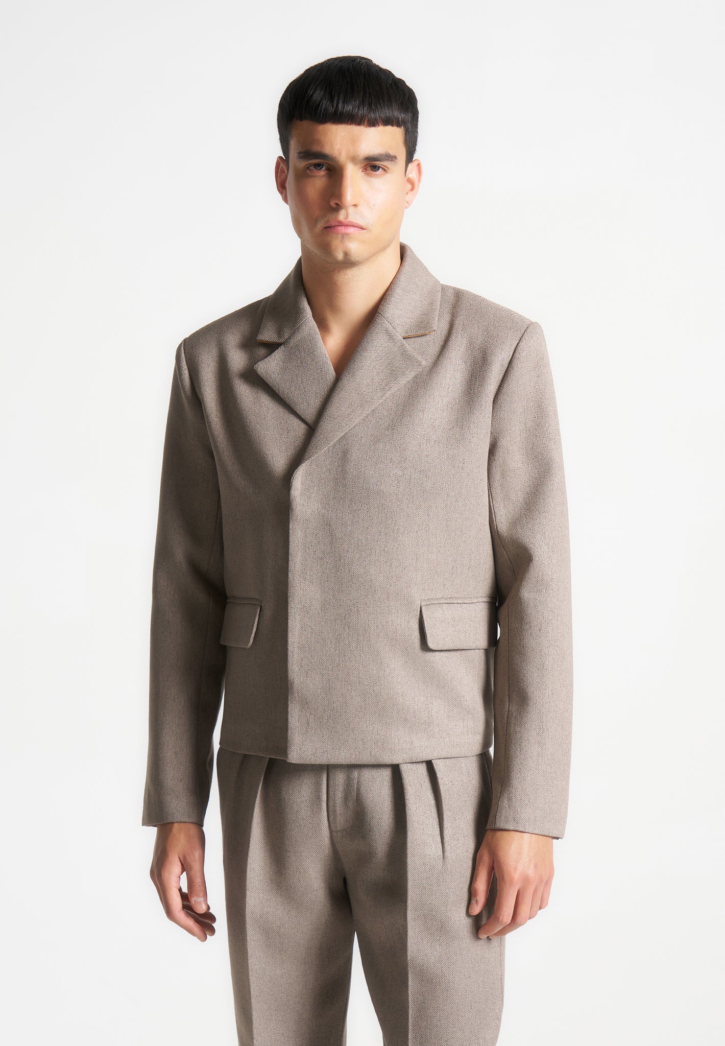 Introducing the Double Breasted Tailored Cropped Blazer in Taupe, a refined addition to any wardrobe. Featuring a polished double-breasted design with a secure button fastening, this Blazer offers a regular fit and a modern cropped silhouette. The two front pockets add a practical touch, making it an ideal choice for any occasion.