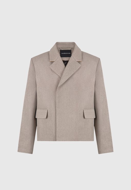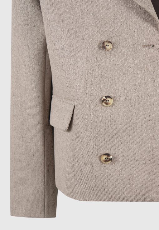 Introducing the Double Breasted Tailored Cropped Blazer in Taupe, a refined addition to any wardrobe. Featuring a polished double-breasted design with a secure button fastening, this Blazer offers a regular fit and a modern cropped silhouette. The two front pockets add a practical touch, making it an ideal choice for any occasion.