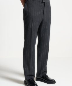 Elevate your wardrobe with the Regular Fit Pinstripe Tailored Trousers in Grey. Designed for a classic and comfortable fit, these Trousers feature a timeless pinstripe pattern that effortlessly complements any formal or smart-casual look. Pair with the Double Breasted Pinstripe Suit Jacket for a seamless look.