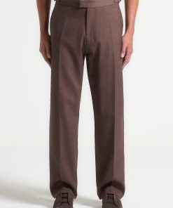 Elevate your wardrobe with the Regular Fit Twill Pleated Tailored Trousers in Brown. Designed for a classic and comfortable fit, these Trousers feature a unique twill finish that effortlessly elevates any formal or smart-casual look. Pair with the Double Breasted Twill Suit Jacket in Brown for a seamless formal ensemble.