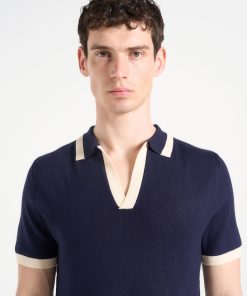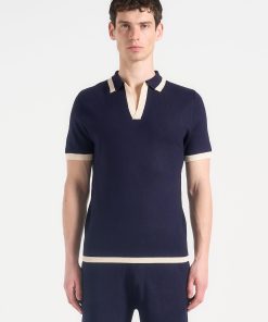 Redefining the classic polo, the Contrast Detail Knit Polo Shirt introduces bold tonal blocking and a sculpted knit texture for a refined yet athletic aesthetic. The open placket neckline adds a sleek, contemporary edge, while the contrast collar and cuffs sharpen the silhouette with intentional visual breaks—ideal for elevated everyday styling.