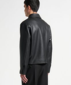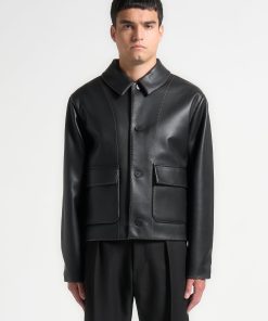 The Vegan Leather Contrast Stitch Jacket in Black is crafted from smooth vegan leather, offering a sleek, modern finish. The bold contrast stitching adds a subtle yet eye-catching detail, making this classic piece a versatile and contemporary wardrobe staple.