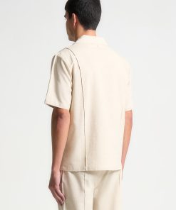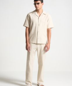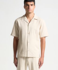 This Linen Pintuck Revere Shirt is an expertly designed shirt with a short sleeve silhouette, lightweight fabric, and pintuck detail. The revere collar adds a touch of refinement to this versatile shirt. Pair it with the Linen Pintuck Trousers or Shorts for a complete look.
