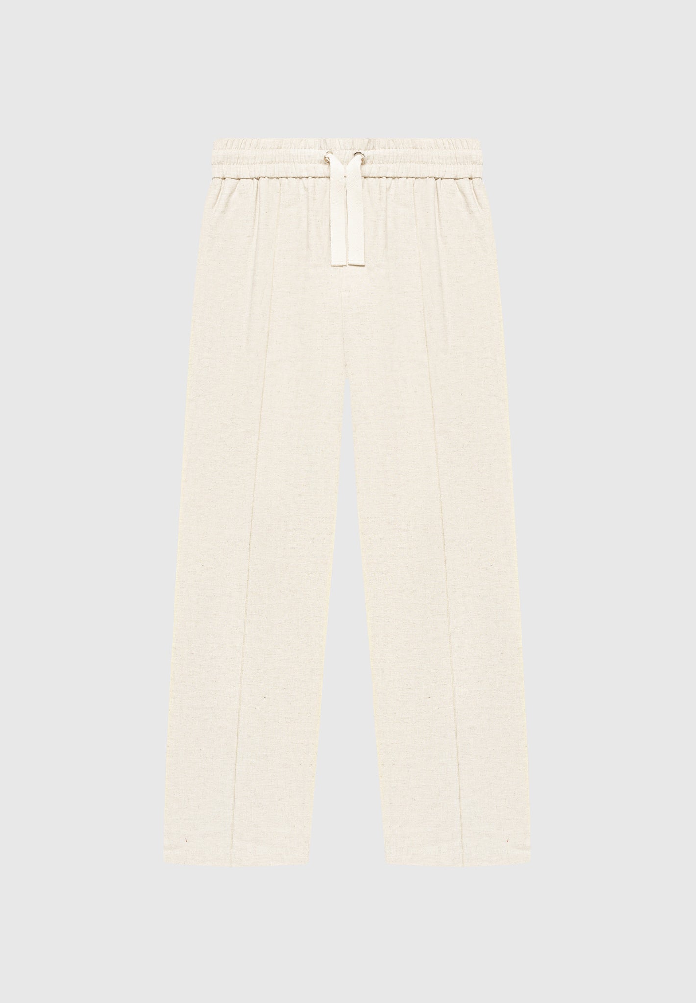 These Pintuck Linen Trousers are meticulously tailored from breathable fabric, providing a comfortable and versatile option suitable for any occasion. The subtle pintuck detailing elevates the aesthetic, while the relaxed fit guarantees a flattering silhouette.