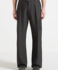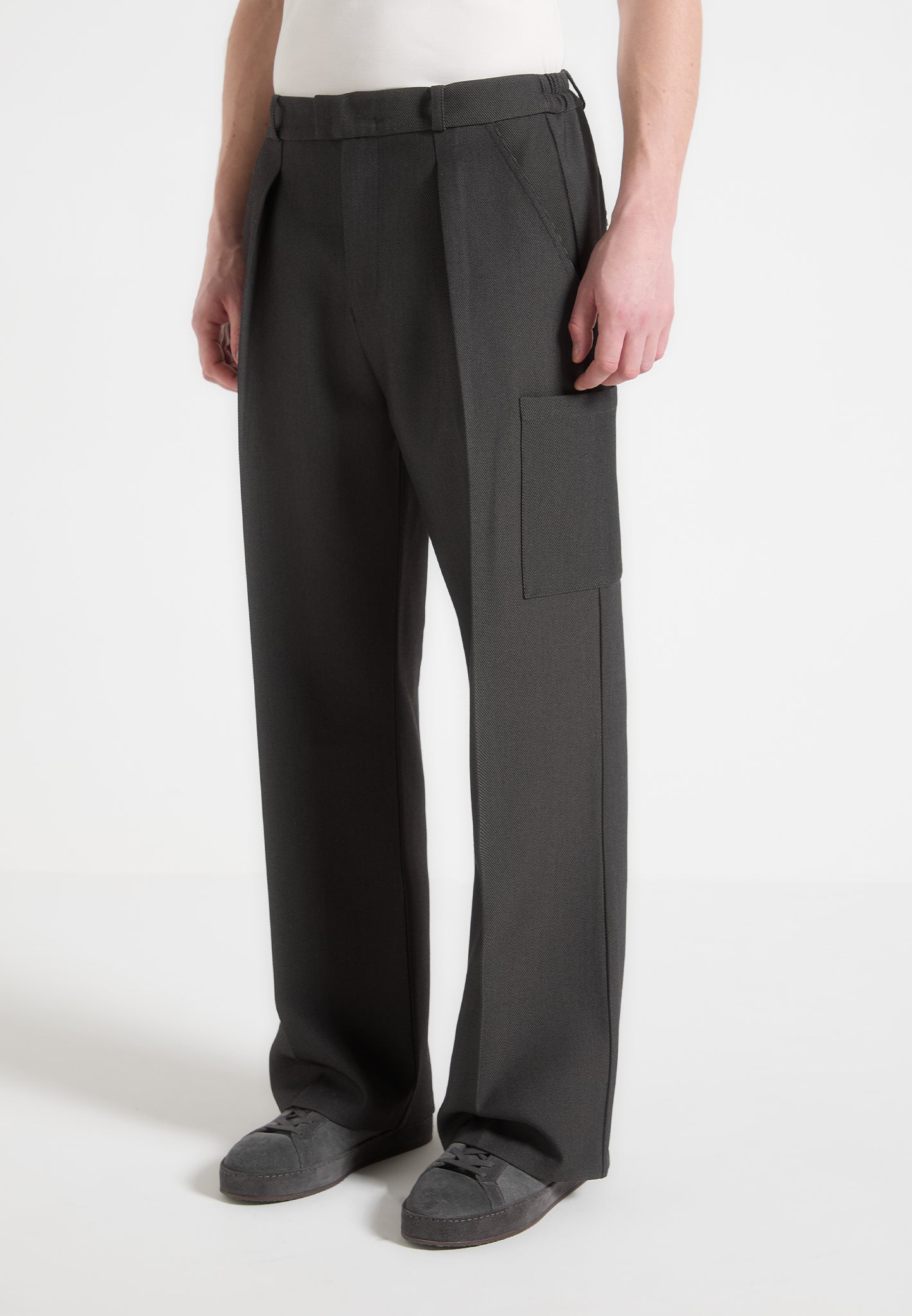 Ideal for any occasion, the Relaxed Fit Pleated Pocket Trousers offer a refined fusion of classic tailoring and utilitarian design. Featuring sharp front pleats and a wide-leg silhouette, it balances sophistication with practicality. Multiple pockets, including a cargo-style side pocket, add functionality and ensure a polished finish.