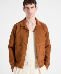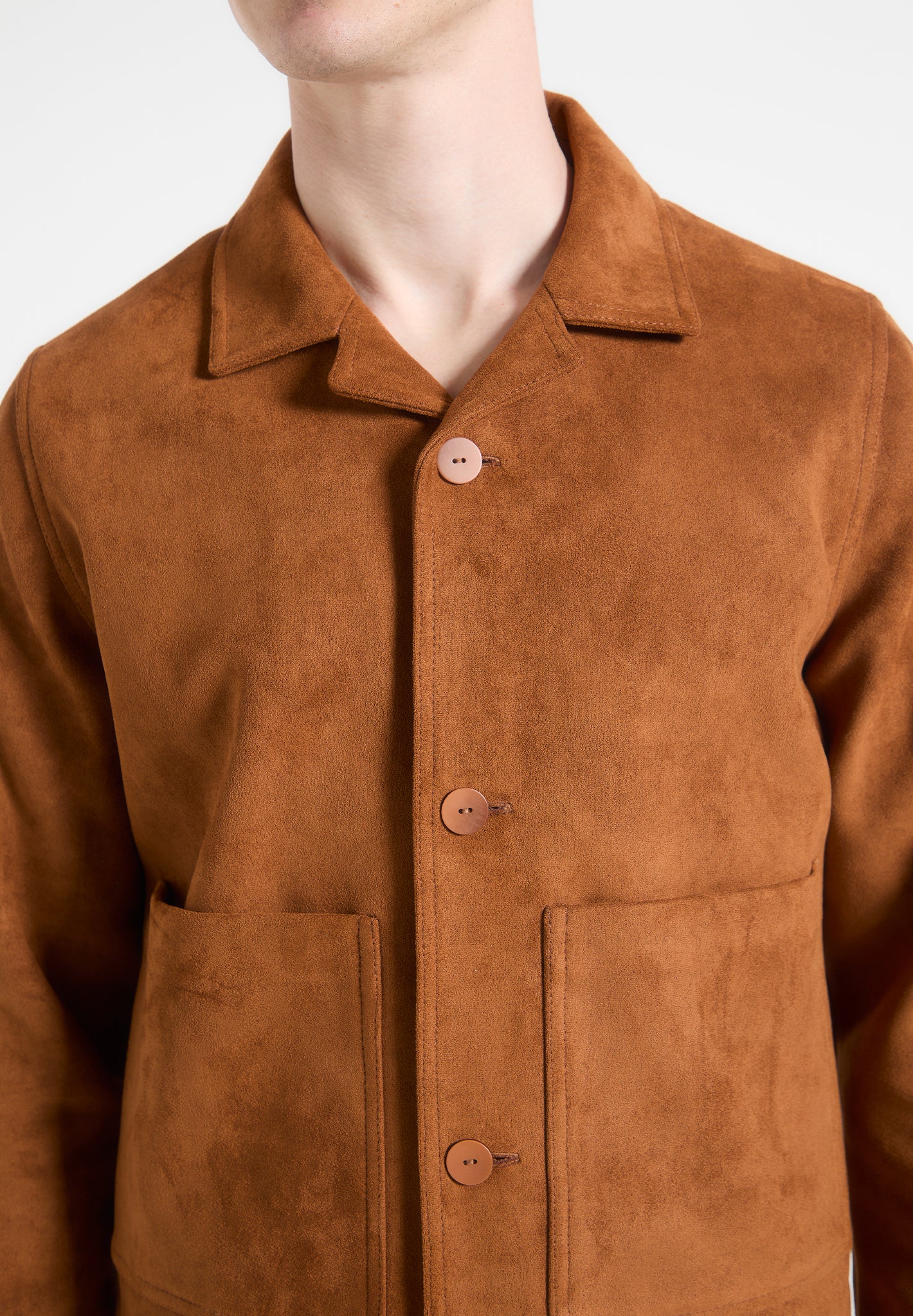 Elevate your style in the Suede Jacket with Revere Collar, a modern reinterpretation of classic outerwear that combines structure with effortless versatility. Crafted from high-quality vegan suede, it features a smooth inner lining and precision-stitched panelling for durability. The tailored fit is complemented by a revere collar and patch pockets, making it a sophisticated yet practical wardrobe essential.