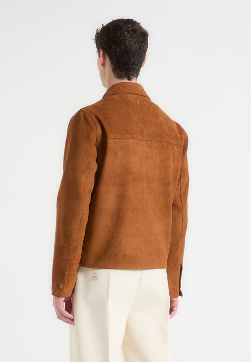 Elevate your style in the Suede Jacket with Revere Collar, a modern reinterpretation of classic outerwear that combines structure with effortless versatility. Crafted from high-quality vegan suede, it features a smooth inner lining and precision-stitched panelling for durability. The tailored fit is complemented by a revere collar and patch pockets, making it a sophisticated yet practical wardrobe essential.