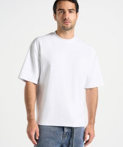 - Ribbed crew neckline for subtle shape retention