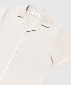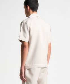 This Beige Pinstripe Revere Shirt is a must-have addition to your wardrobe. With classic pinstripe detailing and a timeless revere collar, this shirt brings style to any look. Pair it with our Pinstripe Shorts for an effortlessly put-together outfit.