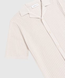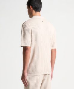 Crafted from a soft and durable knit material, the Ribbed Knit Revere Shirt offers comfort and style. The ribbed fabric adds texture while the short sleeve silhouette and revere collar create a classic yet modern look. Perfect for any occasion, this shirt is a must-have for your wardrobe.