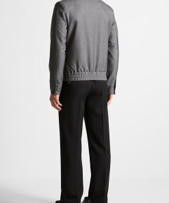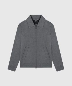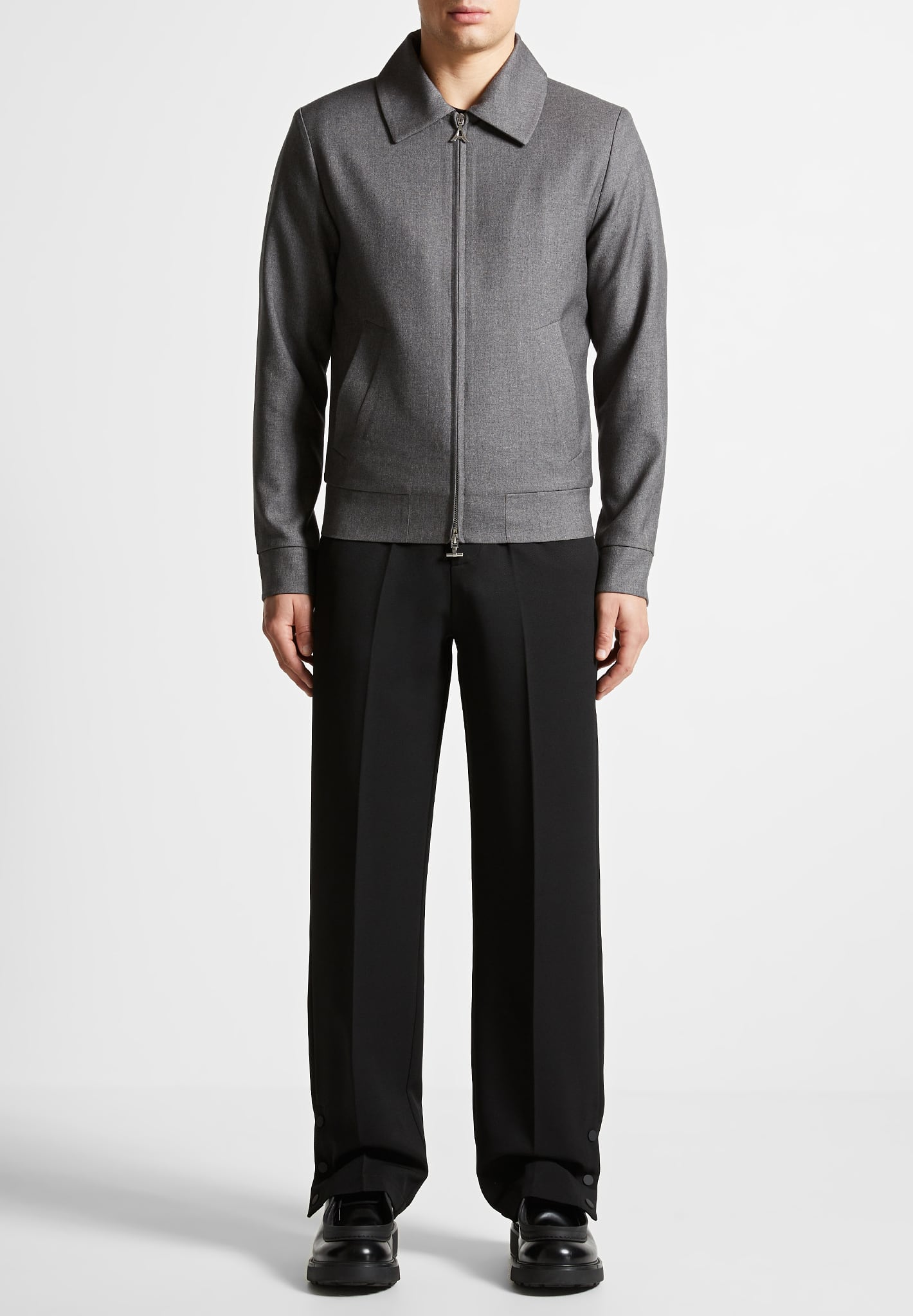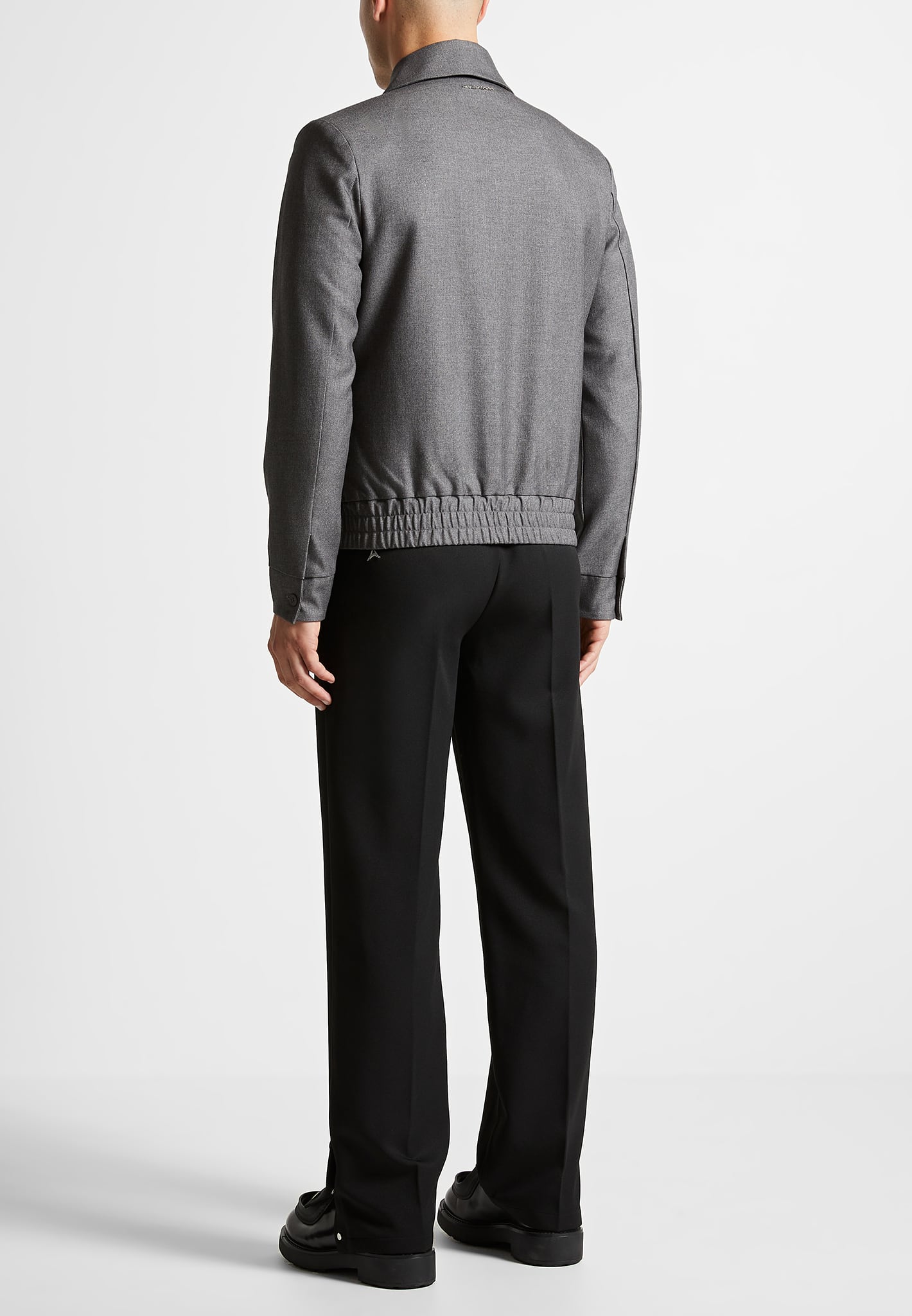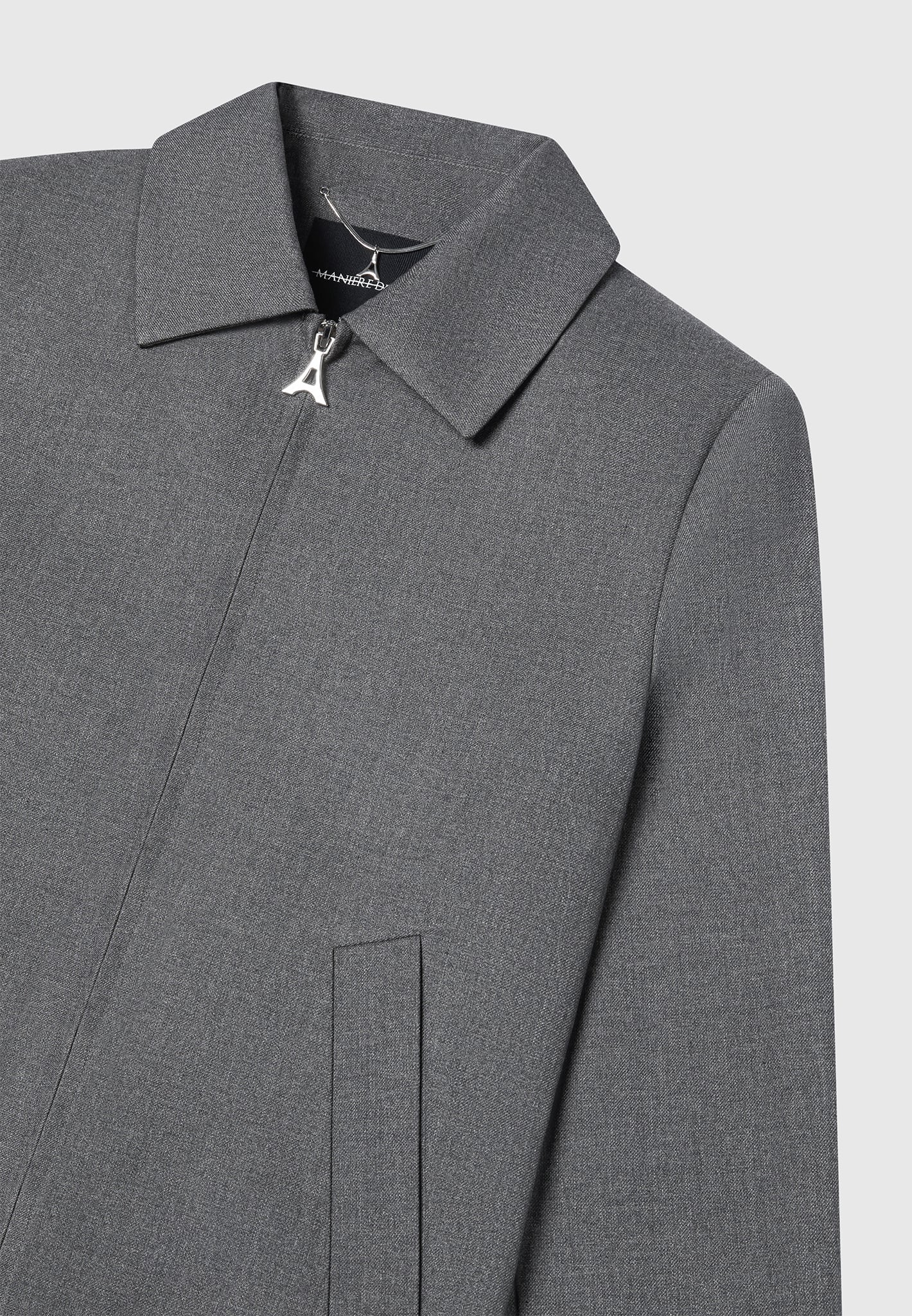 Introducing our Tailored Harrington Jacket in Grey, a modern essential with timeless appeal. Designed for both style and comfort, it features an elasticated hem, front welt pockets, and a classic harrington collar. The front zip, accented with a Silver Eiffel Puller, adds a touch of refinement to this versatile piece. Pair with the Slim Fit Pleated Tailored Trouser in Beige for a completed ensemble.