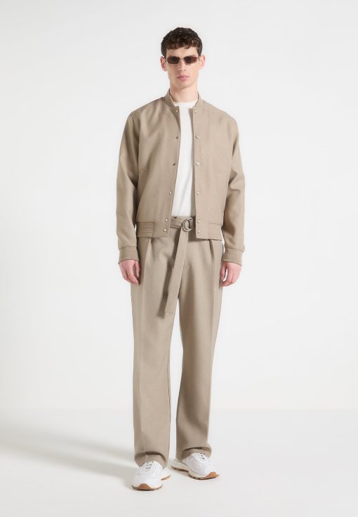 Clean lines and considered details define the Tailored Bomber Jacket, a refined and effortlessly versatile piece that blends structured tailoring with contemporary detailing. Designed with a streamlined silhouette, it features ribbed trims for a polished fit, while the stand collar adds a sleek, modern edge. Finished with a tonal popper button fastening and discreet side slip pockets, this elevated layering piece is a wardrobe essential.
