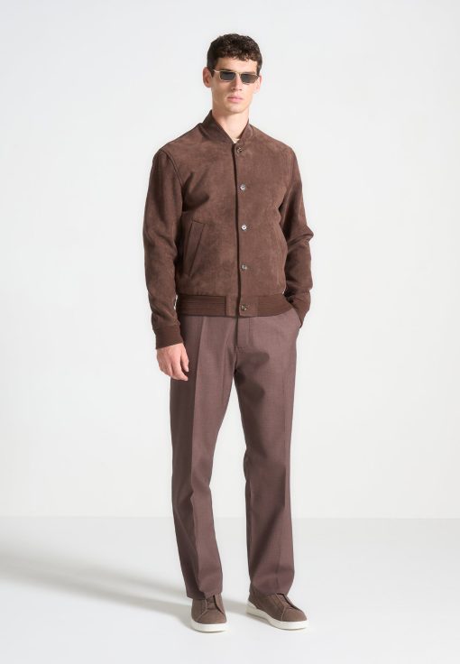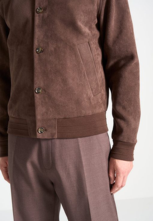 This Suede Bomber Jacket in Brown offers a sleek, modern look with a touch of luxury. The soft vegan suede gives it a premium feel, while the elasticated rib waistband and cuffs ensure a comfortable, tailored fit. The tailored design adds a contemporary edge, making it easy to style for casual or elevated outfits. A perfect blend of comfort and style, this hoodie is a versatile wardrobe essential.
