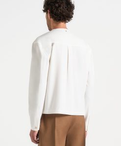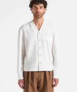 Crafted from lightweight woven fabric, designed to effortlessly blend sharp tailoring with laid-back style. The structured, oversized long sleeve shirt offers comfort when styling with an everyday look, while a clean v-neckline and angular welt pocket add a modern edge. Finished with marbled buttons, it’s a go to piece for a versatile wardrobe.