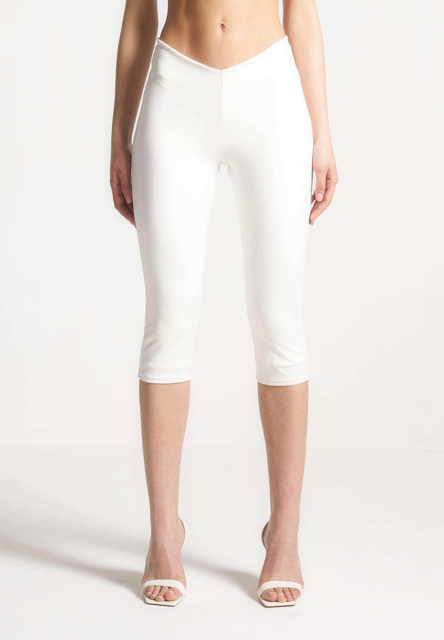 Expertly crafted for a flattering fit, these capri leggings feature an angled waist for added style. With a mid-length design, they offer both comfort and sophistication for any occasion. Experience the perfect combination of fashion and function.