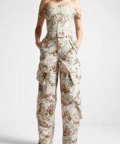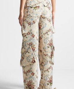 Introducing our Floral Jacquard High Waisted Cargo Pants. Crafted with floral jacquard fabric, they feature 3D cargo pockets for a trendy and comfortable fit. Perfect for a casual yet on trend look.